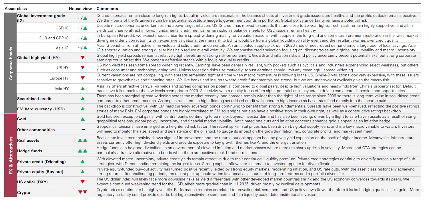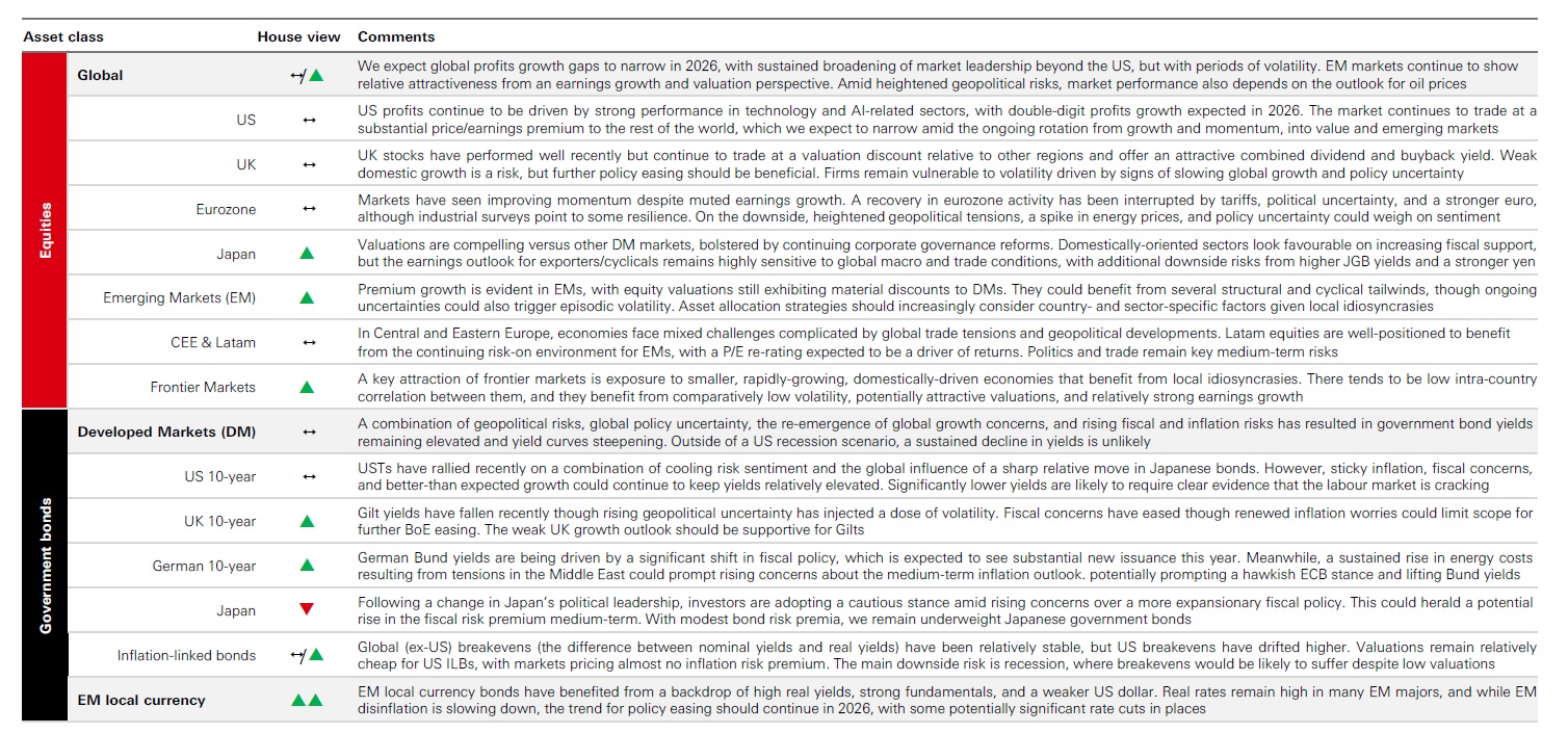 represents a >12-month investment view across major asset classes in our portfolios. Source: HSBC Asset Management as at March 2026.
