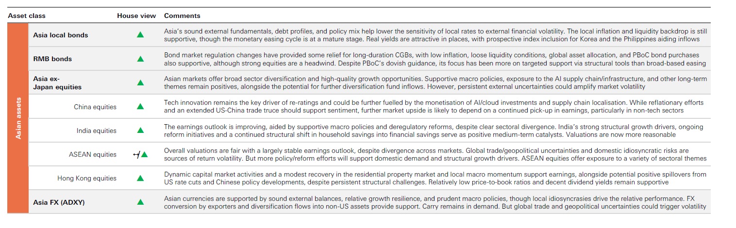 • For Asia ex Japan equities, the underweight, overweight and neutral categories for the region at the aggregate level are also based on high-level asset allocation considerations applied in diversified, typically multi-asset portfolios. However, individual country views are determined relative to the Asia ex Japan equities universe as of 31 January 2026