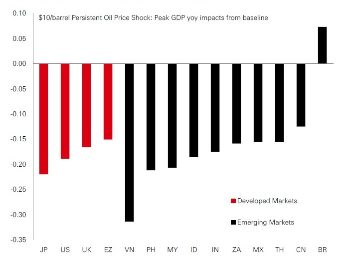 Growth impact of oil shock across economies