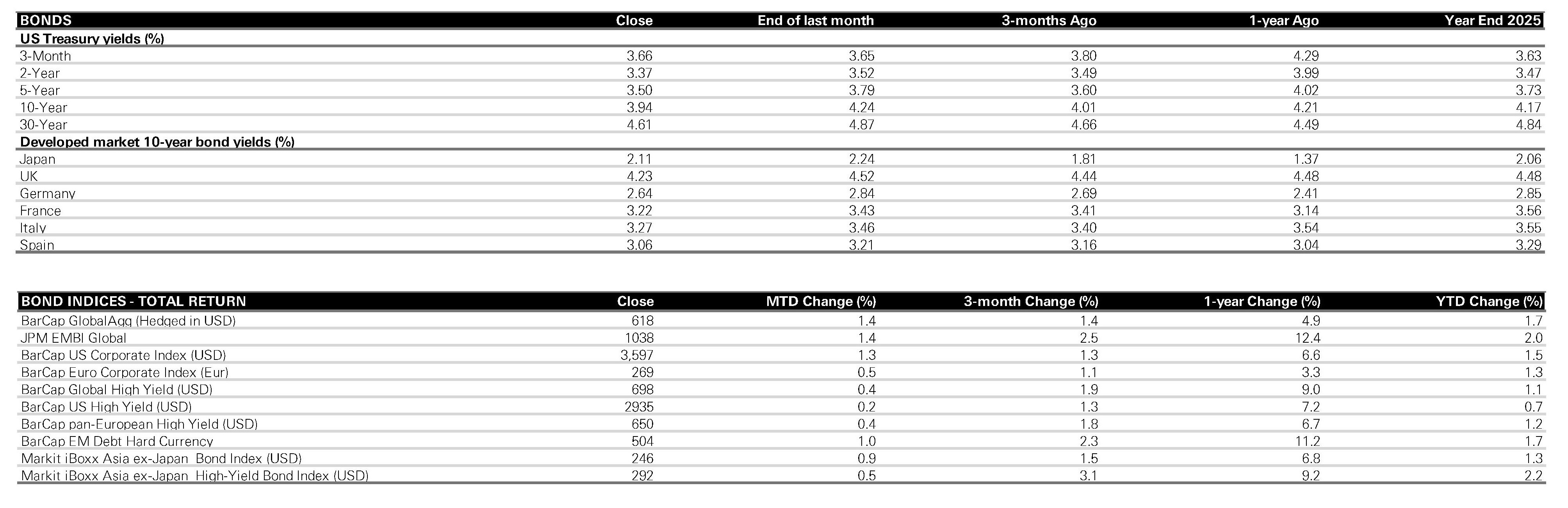 Sources: Bloomberg, HSBC Asset Management. Data as at close of business 28 February 2026.