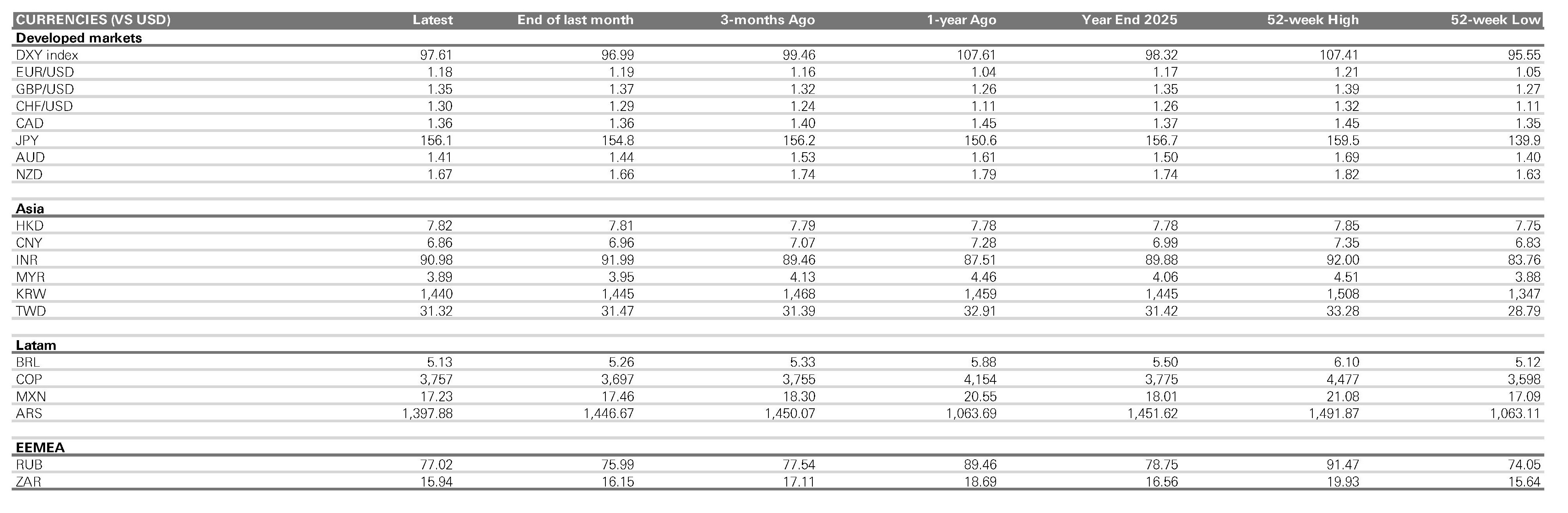 • Similarly, for EM government bonds, the underweight, overweight and neutral categories for the asset class at the aggregate level are also based on high-level asset allocation considerations applied in diversified, typically multi-asset portfolios. However, EM Asian Fixed income views are determined relative to the EM government bonds (hard currency) universe as of 28 February 2026